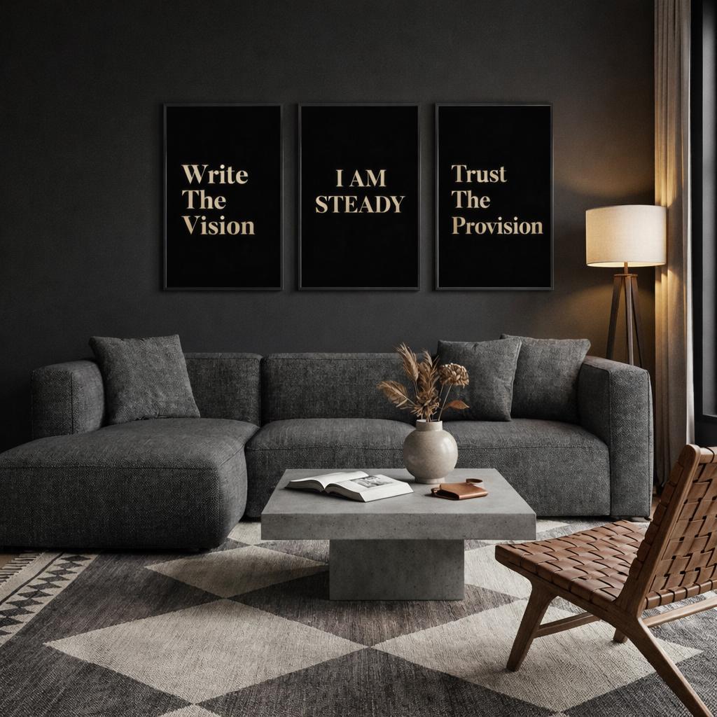 This isn't just wall art—it’s a daily spiritual anchor for the modern man of faith. The I AM STEADY series was curated for the visionary who leads with strength, operates in peace, and understands that every great work begins with a firm foundation in the Word.