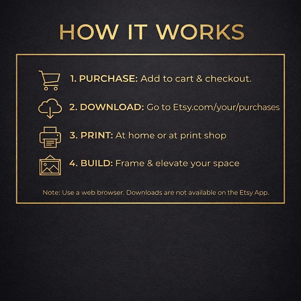 This is an INSTANT DIGITAL DOWNLOAD. No physical product will be shipped. You will receive high-resolution PDF Print files optimized for the following standard frame sizes: