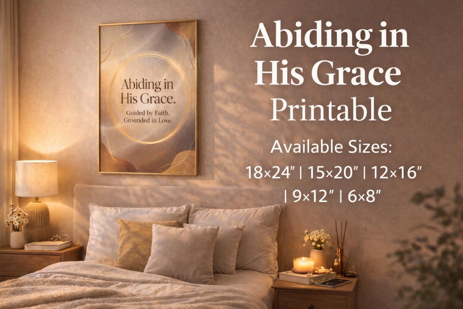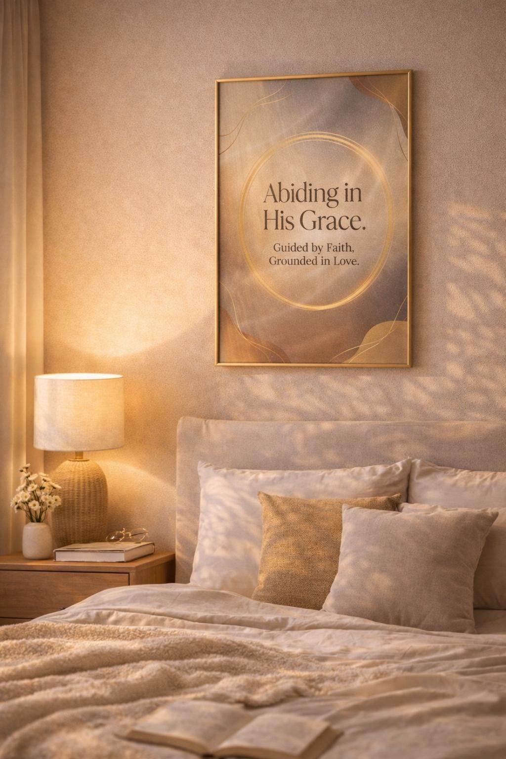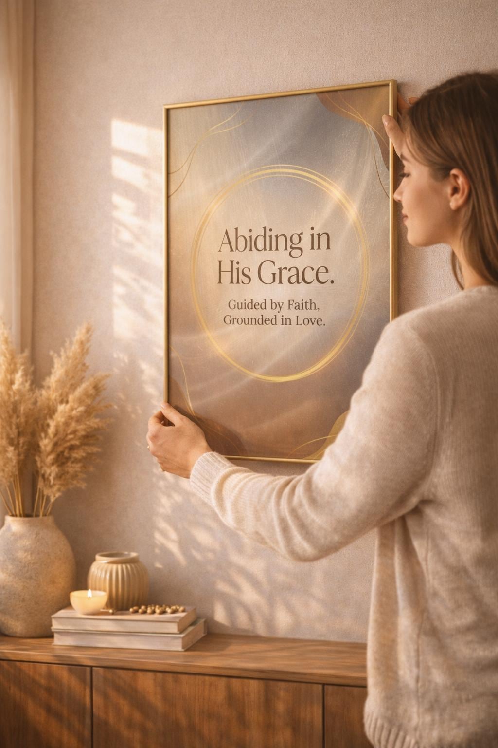 This “Abiding in His Grace” wall art blends soft neutral tones, gold accents, and flowing abstract lines to create a peaceful, elegant piece that fits beautifully into any modern home.