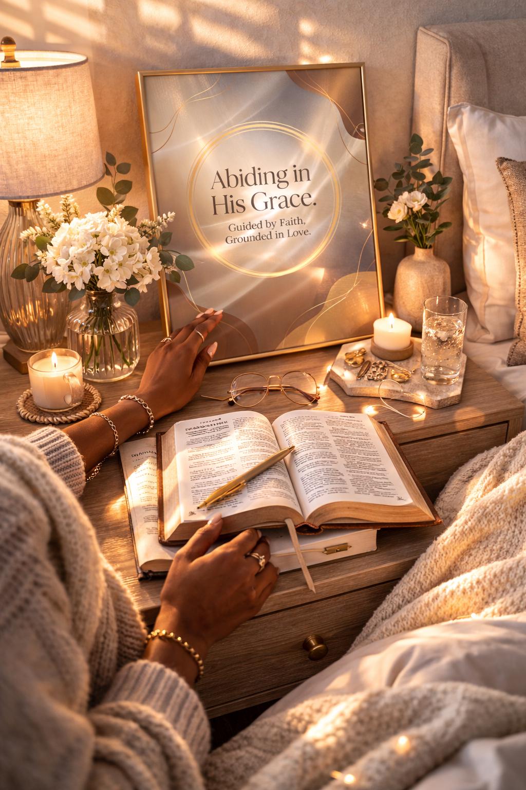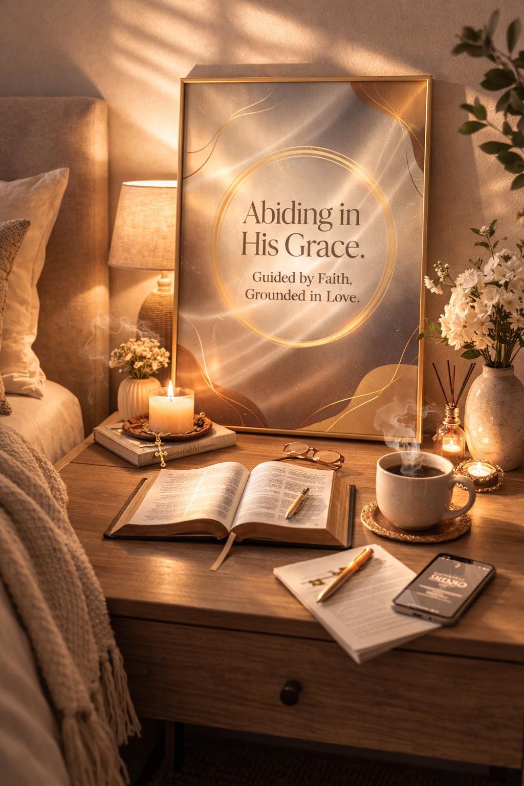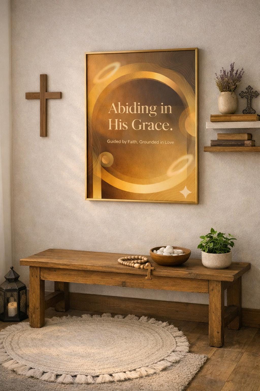 This “Abiding in His Grace” wall art blends soft neutral tones, gold accents, and flowing abstract lines to create a peaceful, elegant piece that fits beautifully into any modern home.