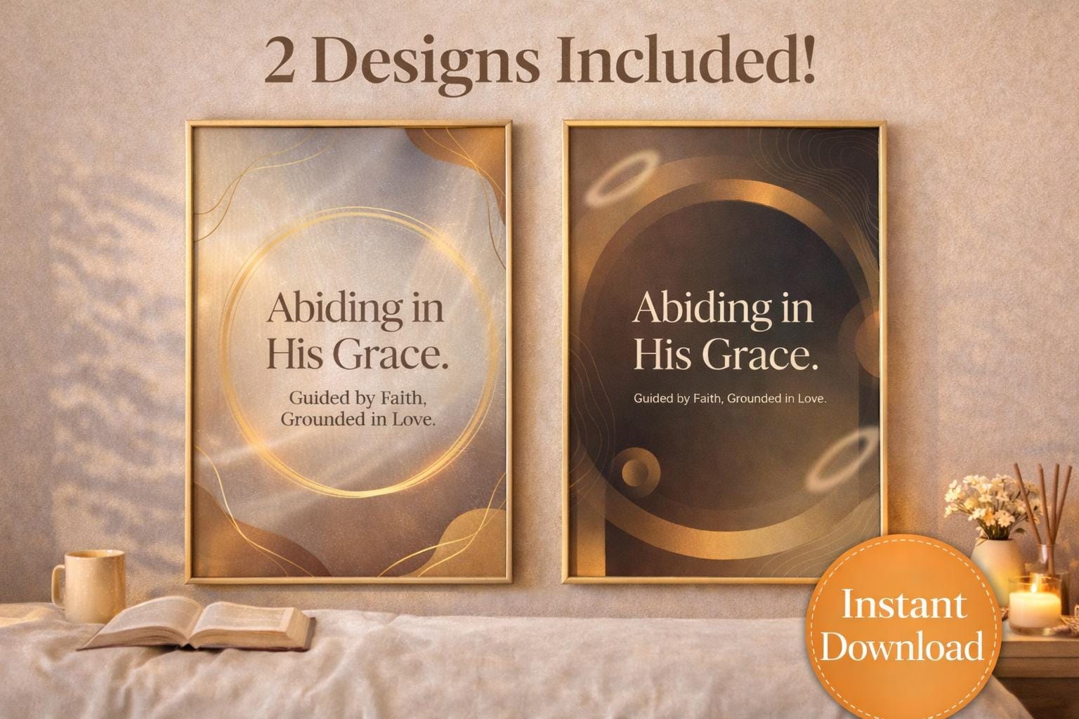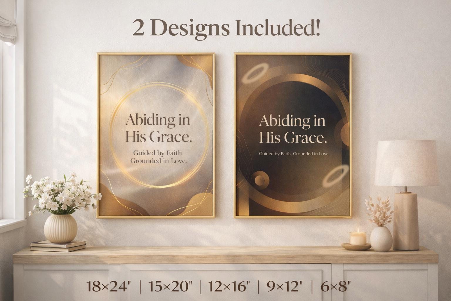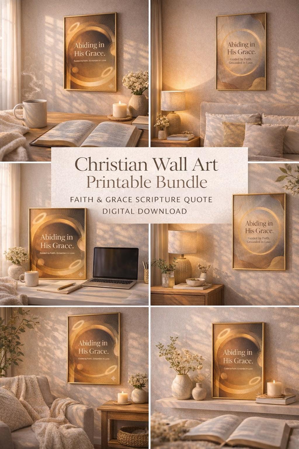 Bring warmth, peace, and faith into your home with this Christian Wall Art Printable Bundle, featuring two elegant “Abiding in His Grace” designs. Created in calming neutral tones with soft golden accents, these prints instantly elevate bedrooms, offices, prayer corners, entryways, and quiet-time spaces.