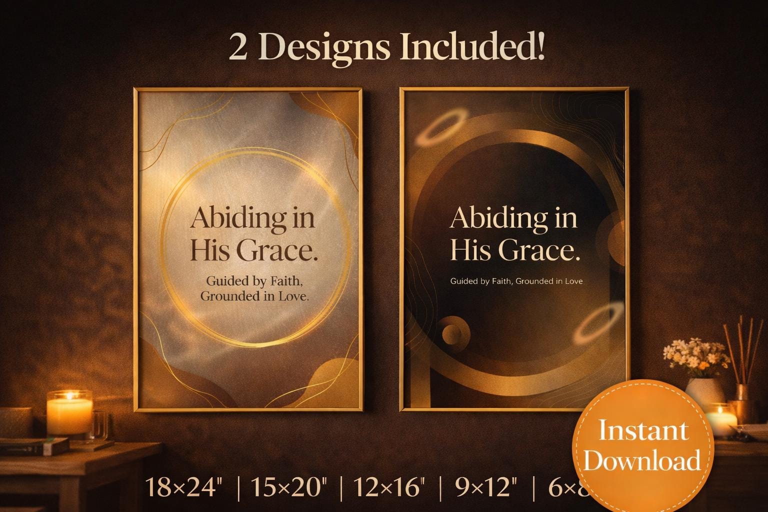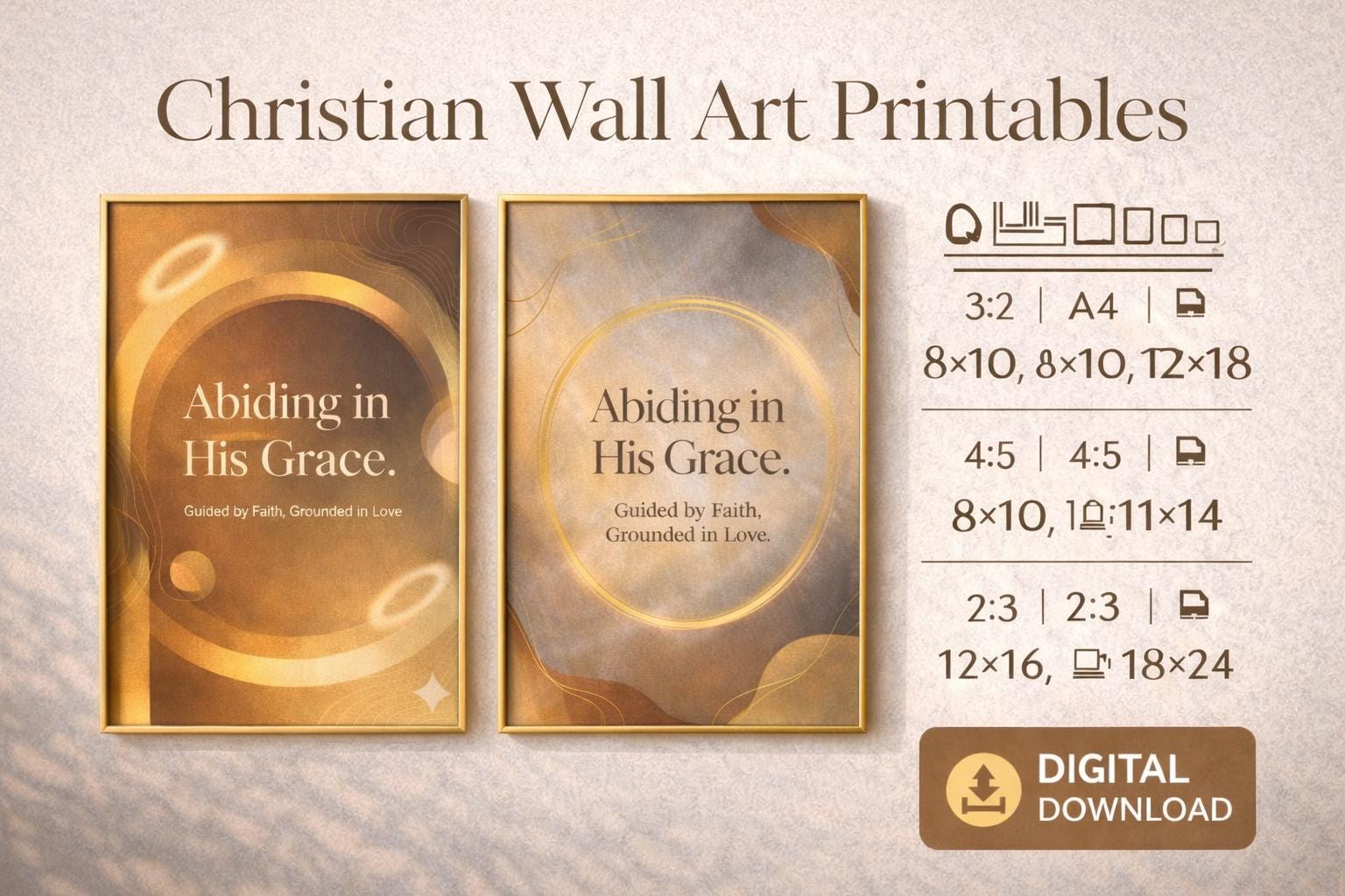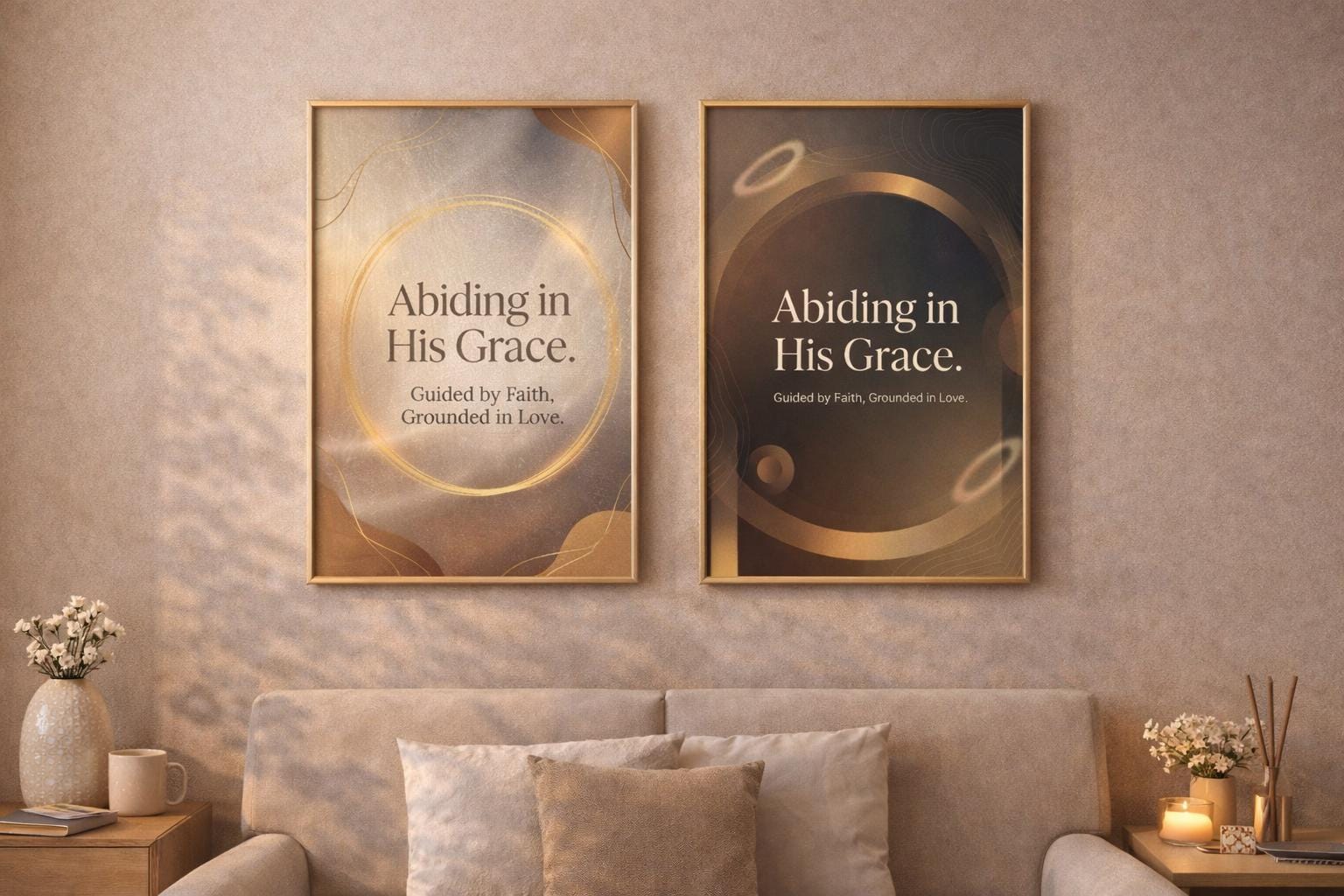 Bring warmth, peace, and faith into your home with this Christian Wall Art Printable Bundle, featuring two elegant “Abiding in His Grace” designs. Created in calming neutral tones with soft golden accents, these prints instantly elevate bedrooms, offices, prayer corners, entryways, and quiet-time spaces.