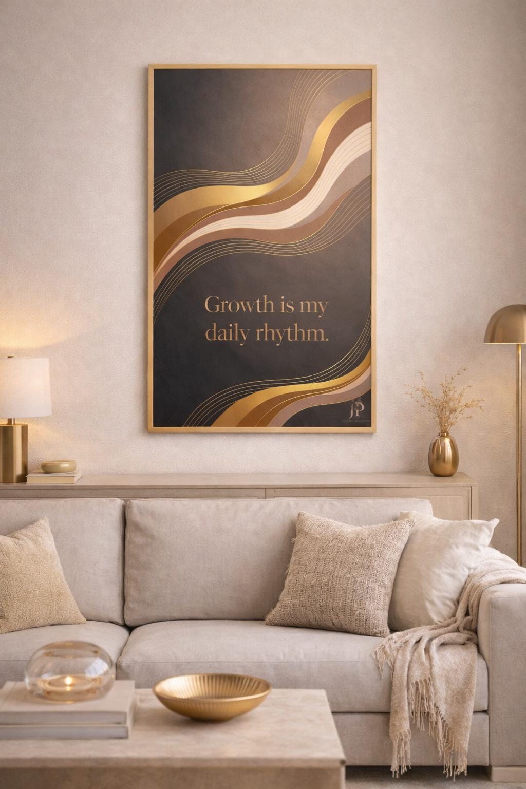 Bring intention into your space with this premium 20×30 wall art print featuring the affirmation “Growth Is My Daily Rhythm.”